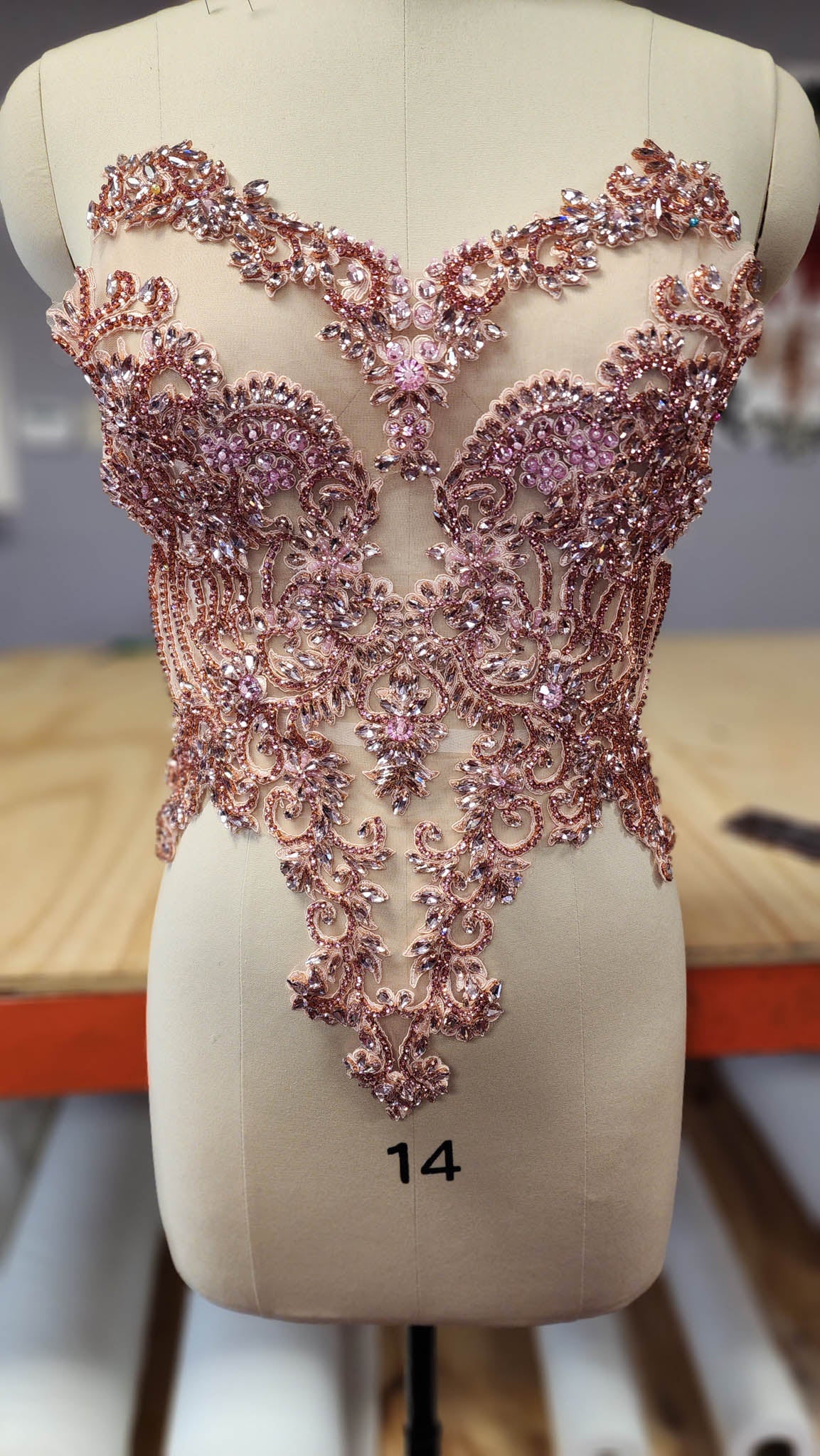 Rhinestone bodice applique handmade with glass rhinestones and beads on embroidered base. This is not a dress, it is a bodice applique for a dress. it is suitable for evening dresses, proms, birthdays and lots more.